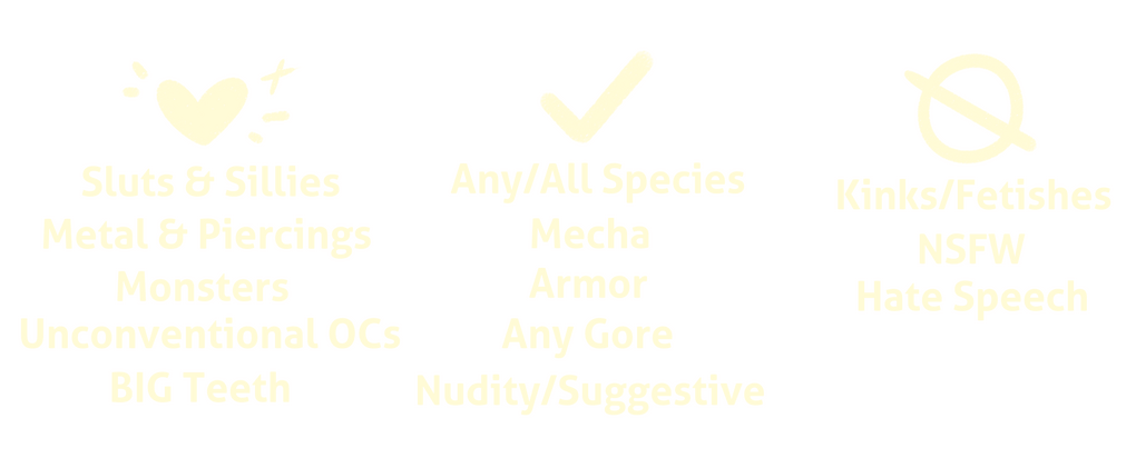 + You may repost the art you've commissioned wherever just remember to credit me properly!! (Just link this page!)